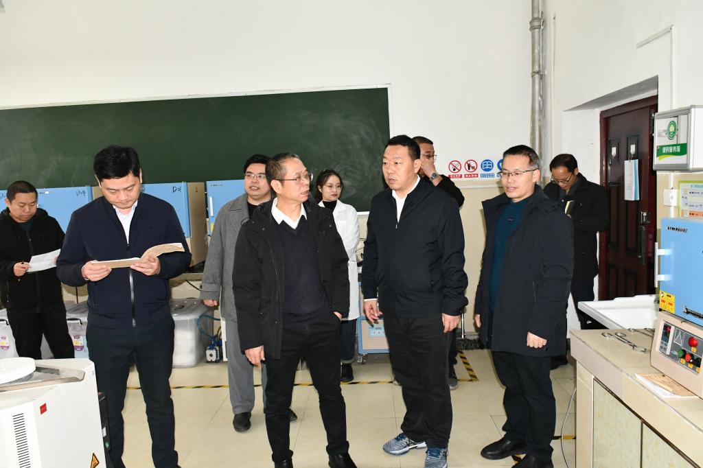 学校党委常委、副校长罗盛锋(右二)带队检查材料科学与工程学院重点实验室
