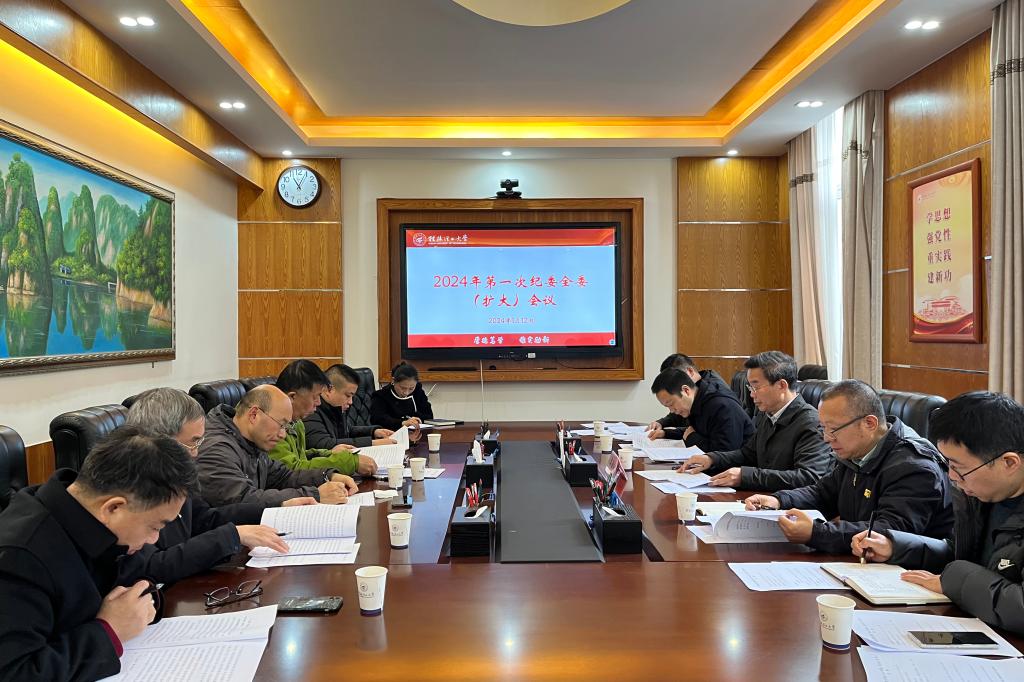 1月12日上午,学校在屏风校区第二会议室召开2024年第一次纪委全委(扩大)会议,自治区纪委监委驻beat365官方网站纪检监察组组长、学校党委常委、纪委书记韦学敏主持会议并讲话。学校纪委委员,驻校纪检监察组、巡察办全体人员参加会议。