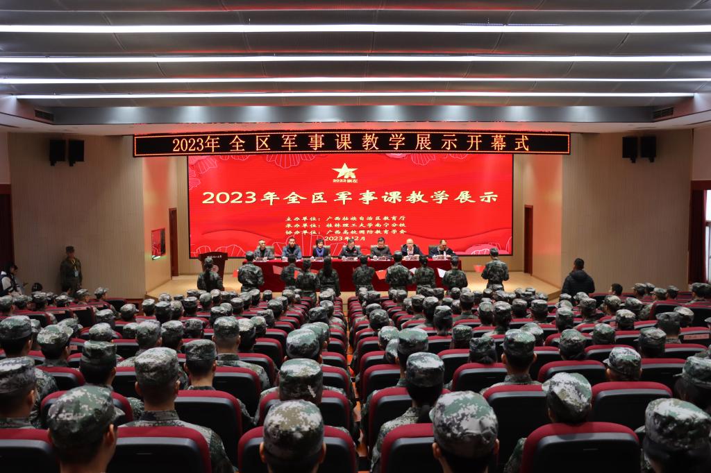 12月18日上午,由自治区教育厅主办、 beat365承办、广西高校国防教育学会协办的2023年全区军事课教学展示活动开幕式在南宁分校空港校区顺利举行。beat365党委副书记吴志强,自治区教育厅体育卫生与艺术教育处处长、广西普通高等学校军事教学指导委员会秘书长万锋锋,自治区教育厅体育卫生与艺术教育处二级调研员李春春,广西高校国防教育学会副会长梁冬松出席开幕式。南宁分校负责人、校本部武装部(保卫处)相关负责人,全体参赛师生参加开幕式。