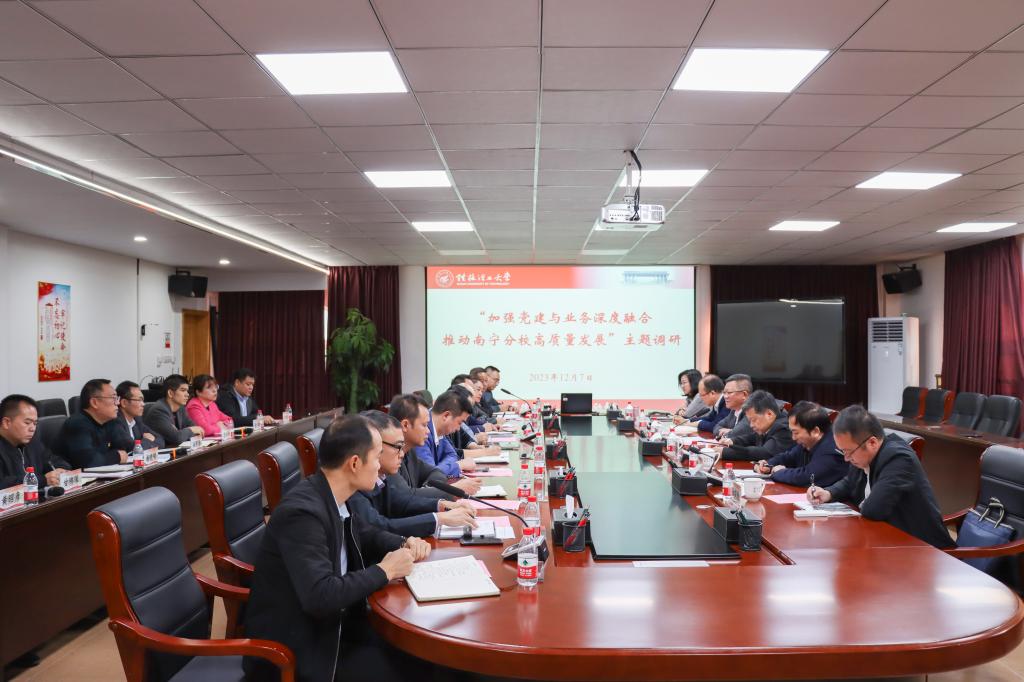 为推动南宁分校各项事业加快发展高质量发展,12月7日,校领导邓军、王敦球、吴志强、周国清、韦学敏、王磊、黎贞崇、曾繁荣带队到南宁分校开展专题调研。党委常委唐壮东、叶昊、邱杰,校长助理张成龙、潘旦光,学校相关单位部门负责人,南宁分校全体在家领导班子成员以及各单位、各部门负责人参加调研。