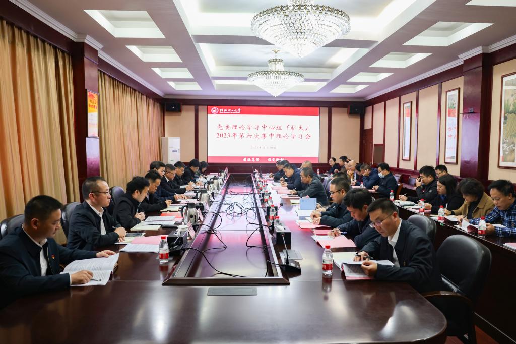 11月30日,学校在屏风校区教八楼会议室举行党委理论学习中心组(扩大)2023年第六次集中理论学习会,深入学习贯彻习近平总书记对宣传思想文化工作作出的重要指示和全国宣传思想文化工作会议精神、习近平总书记在中共中央政治局第九次集体学习时的重要讲话精神以及习近平总书记重要理论文章《推进生态文明建设需要处理好几个重大关系》,坚持先学一步、深学一层,在深化内化转化上下功夫,在强化担当作为上带好头,在抓好任务落实上出实招,不断把党的创新理论学习贯彻引向深入,以新气象新作为推动全校各项工作不断开创新局面。