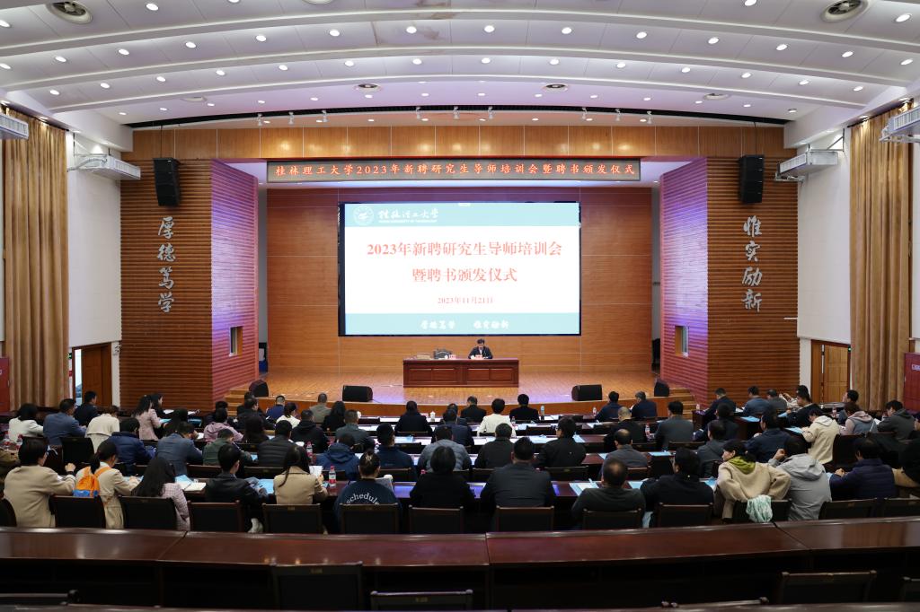 为深入贯彻全国研究生教育会议精神,全面落实研究生导师立德树人职责,加强研究生导师队伍建设,11月21日上午,学校在屏风校区图书馆报告厅举行2023年新聘研究生导师培训会暨聘书颁发仪式。学校副校长周国清教授、材料科学与工程学院刘远立教授、学校心理健康教育与咨询中心李海亮主任为本次培训作报告。会议由研究生院负责人主持。beat365新聘研究生导师,各学院分管研究生工作副院长、研究生教学秘书等100余人参加了本次培训。