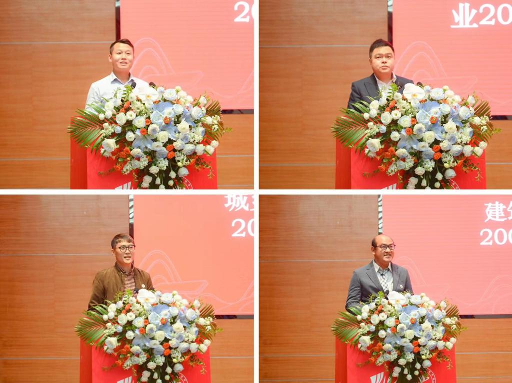 土木01级校友、“建宏科技奖学金”设立者、“双百计划”参与者、广西建宏工程科技有限公司总经理文川,建筑与土木工程专业07级研究生、“大汉岩土奖学金”设立者、广西大汉岩土工程有限责任公司董事长张永闯,城规04级校友、广西城乡规划设计院规划三院副总规划师宋洋,建筑03级校友、大洲设计咨询集团有限公司中南分公司总建筑师郭锐作为校友代表讲话,他们深情回顾了在校期间的学习和生活,分享了在各自岗位上奋斗经历。