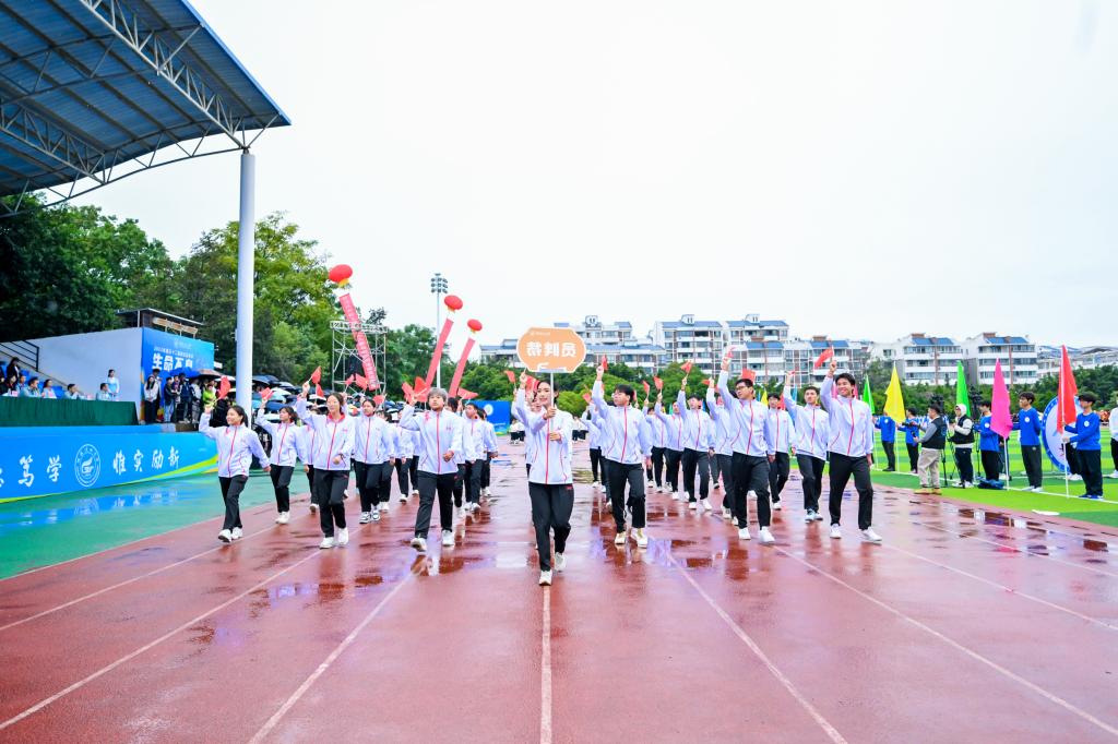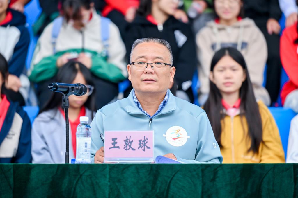 学校党委副书记、校长王敦球致运动会开幕辞。他指出,一直以来,学校高度重视体育工作,认真贯彻落实习近平总书记关于体育的重要论述,秉持“五育并举”教育方针,按照国家体育健康教育指导意见,通过大力开展体育课、体育锻炼、体育竞赛,帮助同学们享受乐趣、增强体质、健全人格、锤炼意志,促进同学们德智体美劳全面发展;通过不断丰富教职工体育文化生活,在本次运动会增设教职工竞赛项目等,促进教职工更加积极地投身体育锻炼。同时,学校大力开展阳光校园运动,积极抓好竞技体育工作,学校师生在各大赛事中取得了明显成绩。