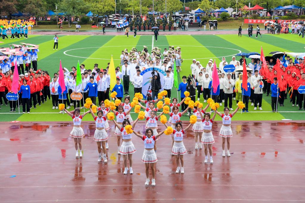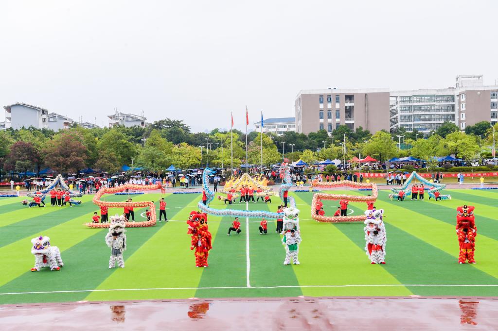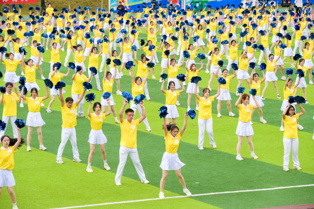 啦啦操、舞龙舞狮、团体操等汇报表演将现场气氛推向高潮。在热烈的氛围中,王敦球宣布beat365第52届田径运动会正式开始。