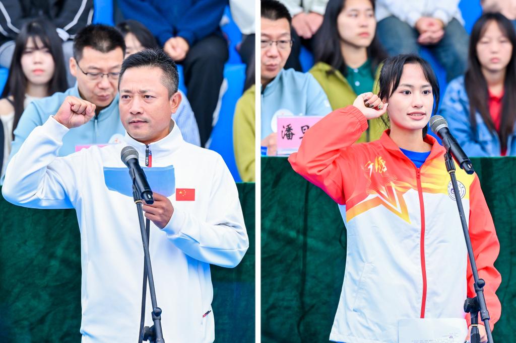 体育教学部徐建中老师、环境科学与工程学院2021-1班周广晶同学分别代表裁判员、运动员进行了宣誓。
