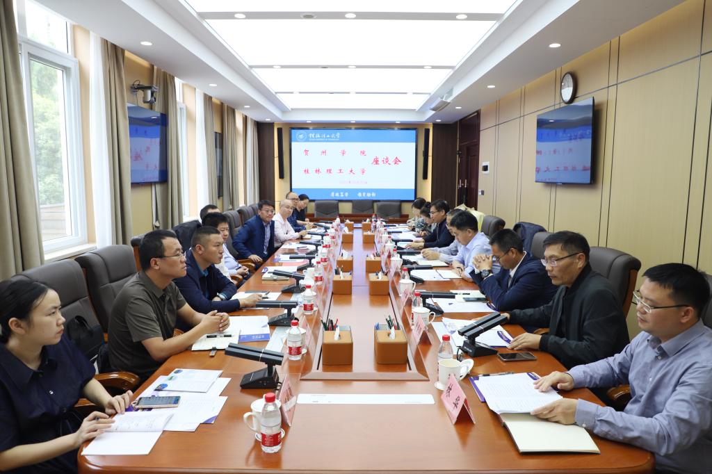会上,吴郭泉向王敦球赠送贺州学院八十周年校庆邀请函。与会人员围绕教学质量监控、教务管理与教学运行、科研及人才培养、学科共建等方面展开了深入交流。