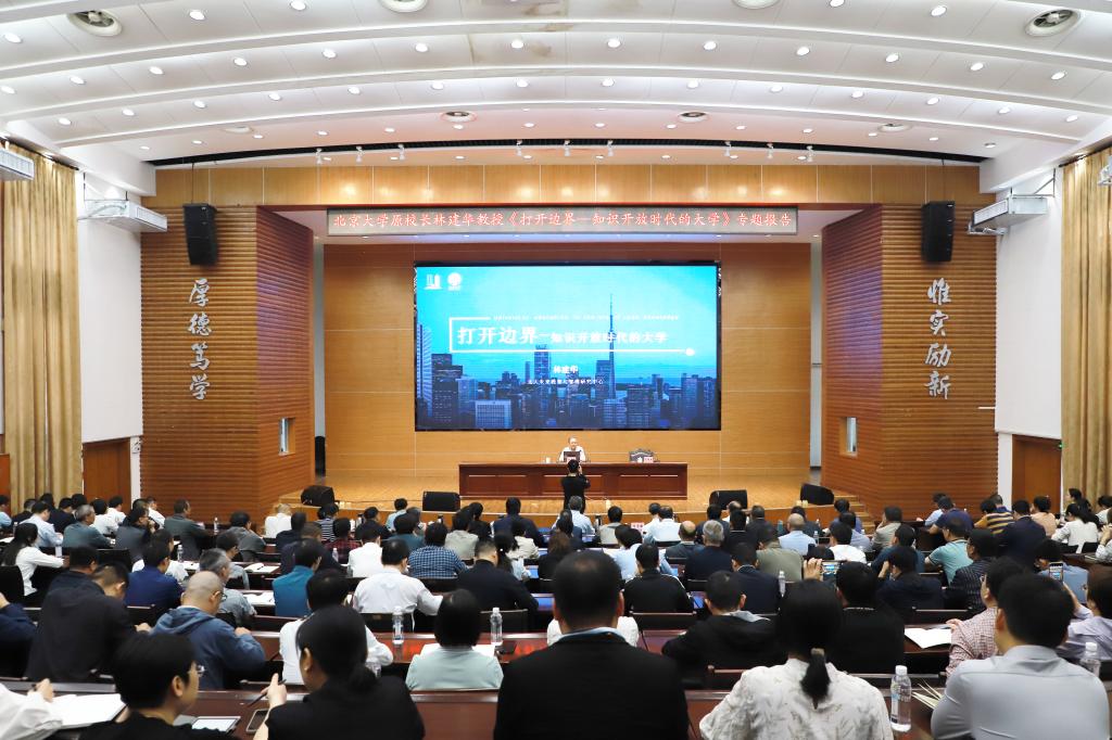 北京大学原校长林建华教授作题为《打开边界——知识开放时代的大学》的专题报告