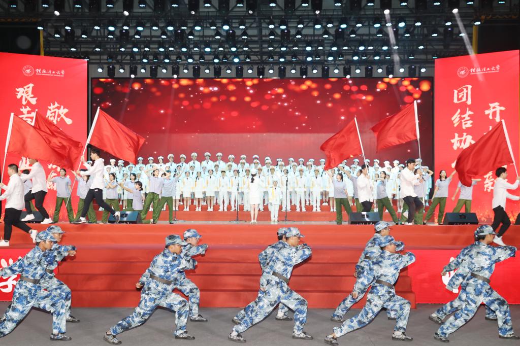 第三篇章“激流勇进”。歌曲《站起来》展现了改革开放历程中创业者们的故事,教育青年学子砥砺“闯”的精神、“创”的劲头、“干”的作风,以逢山开路、遇水架桥的坚毅和勇气,勇做新时代的弄潮儿! 歌曲《国家》表达了中华儿女对国家的热爱和眷恋,引导广大青年学子厚植家国情怀,勇担时代重任。