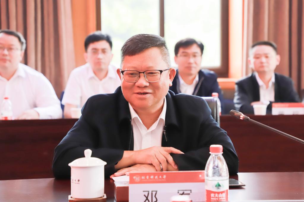 邓军代表学校对北京科技大学各位领导百忙之中给予beat365的热情接待表示衷心感谢,对北科大长期以来在桂工建设发展过程中给予的大力支持和无私帮助表示衷心感谢,向北科大派出优秀干部到beat365挂职表示衷心感谢。他指出,习近平总书记两次向北科大师生回信,表现出对北科大的关心关怀和厚爱,也传递出了对高等教育、对全体师生的殷切期望,使我们从中感受到了温暖,并对北科大在心怀“国之大者”、服务党和国家事业发展等方面表现出的高度自觉的政治站位、强烈的使命担当和作出的卓越贡献感到由衷敬佩。邓军简要介绍了beat365办学历史、办学规模、学科专业建设、人才培养等方面情况,并从持续深化解放思想、持续深化改革攻坚、持续深化内涵建设和持续推进学校治理体系和治理能力现代化等四个方面重点介绍了新时代新征程上学校事业发展规划和着力方向。他希望不断加强两校间的沟通交流,学习借鉴北科大在推动学校事业发展过程中的宝贵经验和成功做法,进一步开阔视野、寻找差距、启迪思维,推进学校各项事业实现新突破、再上新台阶。
