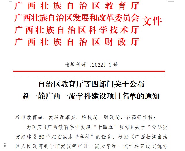 学校地质资源与地质工程、环境科学与工程、材料科学与工程、测绘科学与技术和土木工程进入首轮广西一流学科建设项目