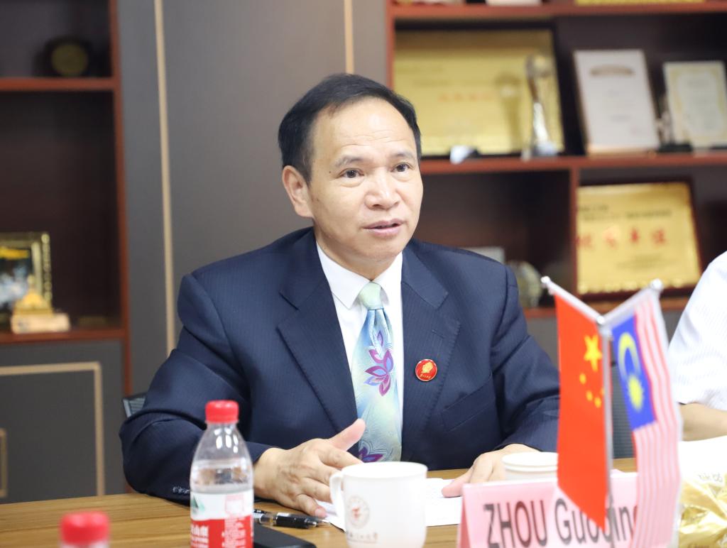 周国清代表学校向马来西亚多媒体大学副校长黄显扬一行的到来表示热烈欢迎,并简要介绍了学校的基本情况。他表示,在中马友好合作的大背景下,广西发挥独特区位优势,积极推动与马来西亚在教育领域的深度合作,已发展成为中国与马来西亚高等教育合作交流最活跃的区域之一。beat365作为广西重要的理工科大学和广西最早开展留学生教育的高校之一,与马来西亚多媒体大学2022年合作举办机械制造及其自动化专业4+0本科教育项目,全面开启了两校在国际化人才培养方面的合作。希望两校以此次会议为契机,共商合作大计,共谋学校发展,携手共进,将合作推向更宽领域和更高层次。