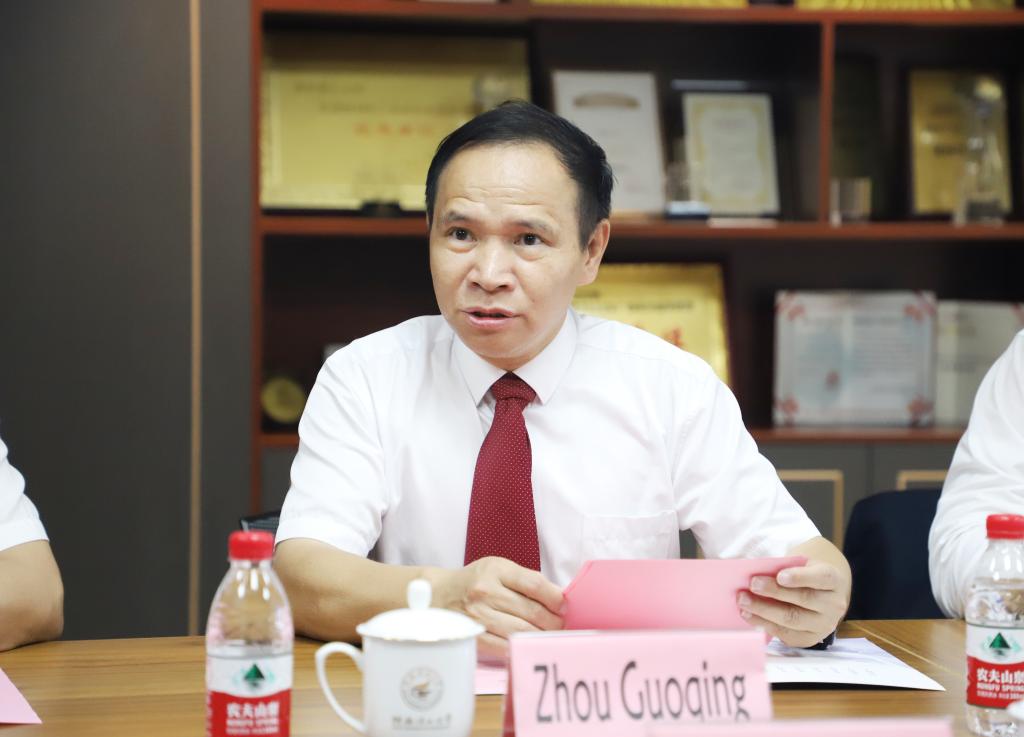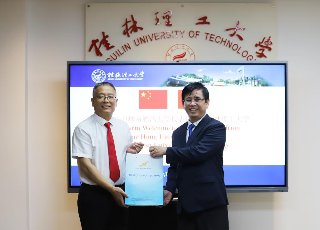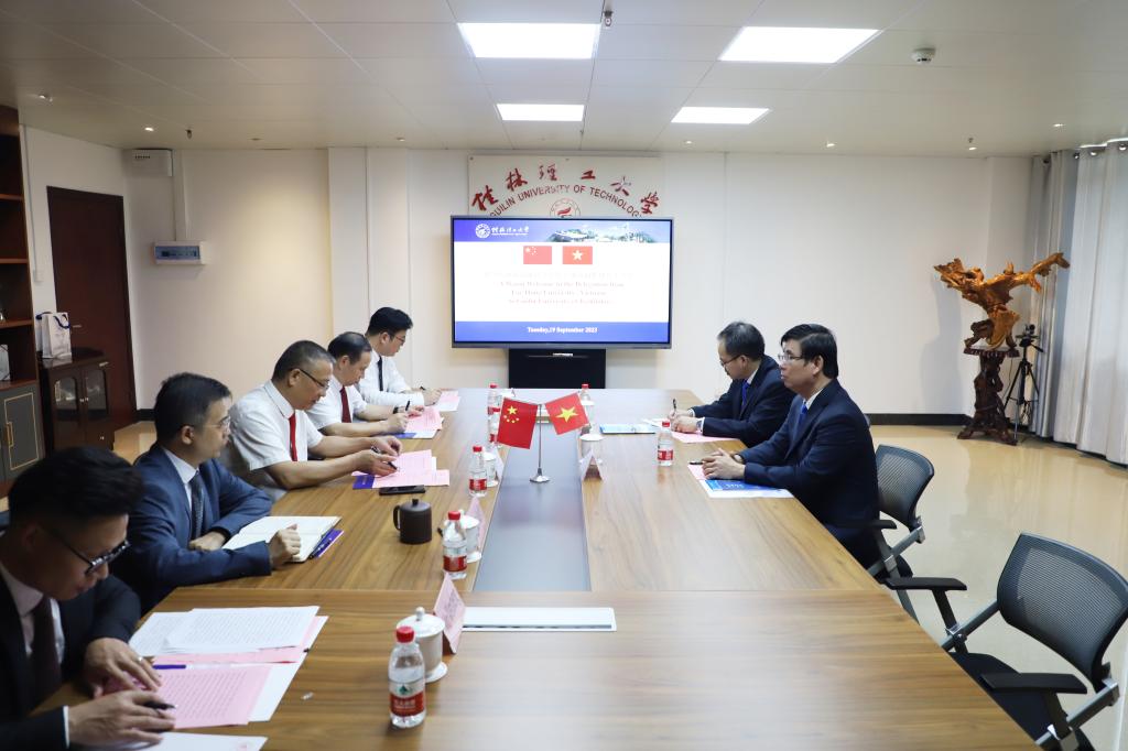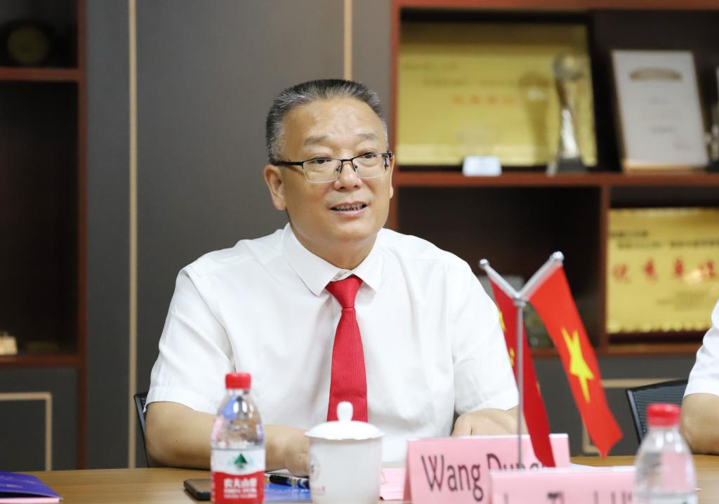 王敦球代表学校向越南雒鸿大学校长林成显、副校长阮清霖一行的到来表示热烈欢迎,并简要介绍了学校的基本情况。他表示,中国和越南是山水相连的社会主义友好邻邦,是具有战略意义的命运共同体。在教育合作方面,广西具备与越南国土接壤优势,已发展成为中国与越南高等教育合作交流最为活跃的区域之一。近年来,beat365与雒鸿大学多次合作举办短期汉语语言与文化交流项目,两校友好交往十分频繁,增进了中越师生的交流和中越人民的友谊。他希望双方以此次交流为契机,共叙深情厚谊,共商合作大计,共谋学校发展,进一步在师生互访、科研合作、国际学生联合培养等方面加强合作交流,形成两校良性互动局面,共同在更宽领域、更深层次上取得丰硕成果。