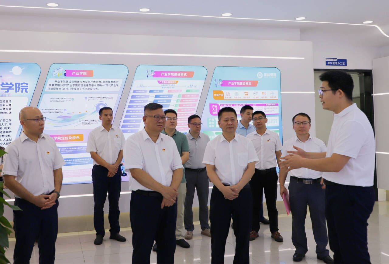 揭牌仪式后,校领导、企业领导、南宁分校党委主要负责人及师生代表一同参观人工智能产业学院,并就如何更好地开展校企合作、建设好人工智能产业学院进行了交流。
