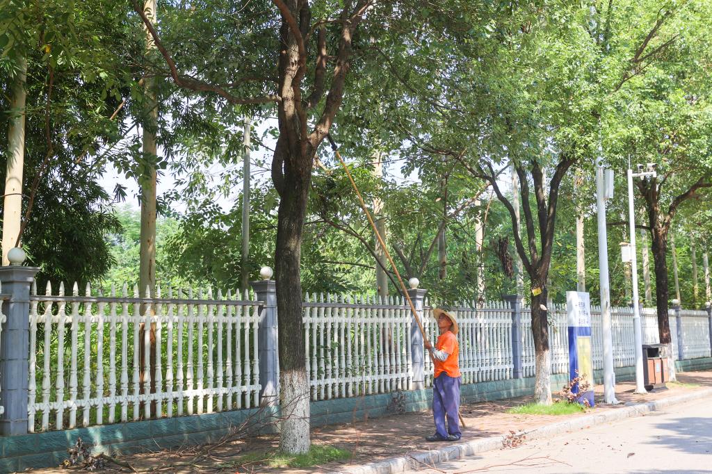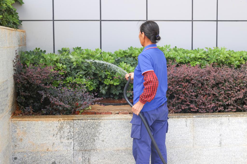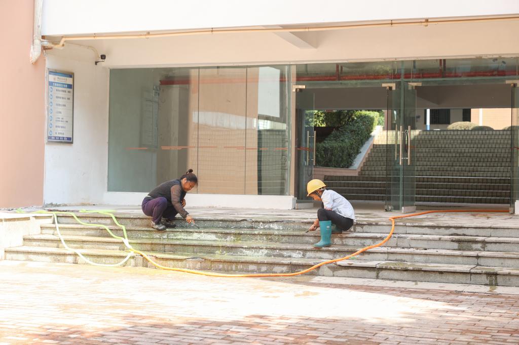 后勤工作人员开展校园环境清洁