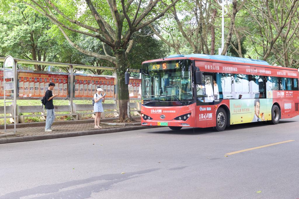 在校内公交站乘车
