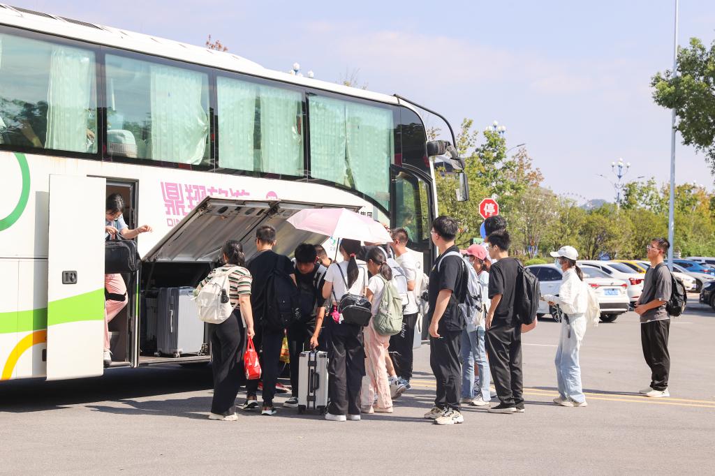 “定制公交”、“舱门到校门”专线满载学生返校