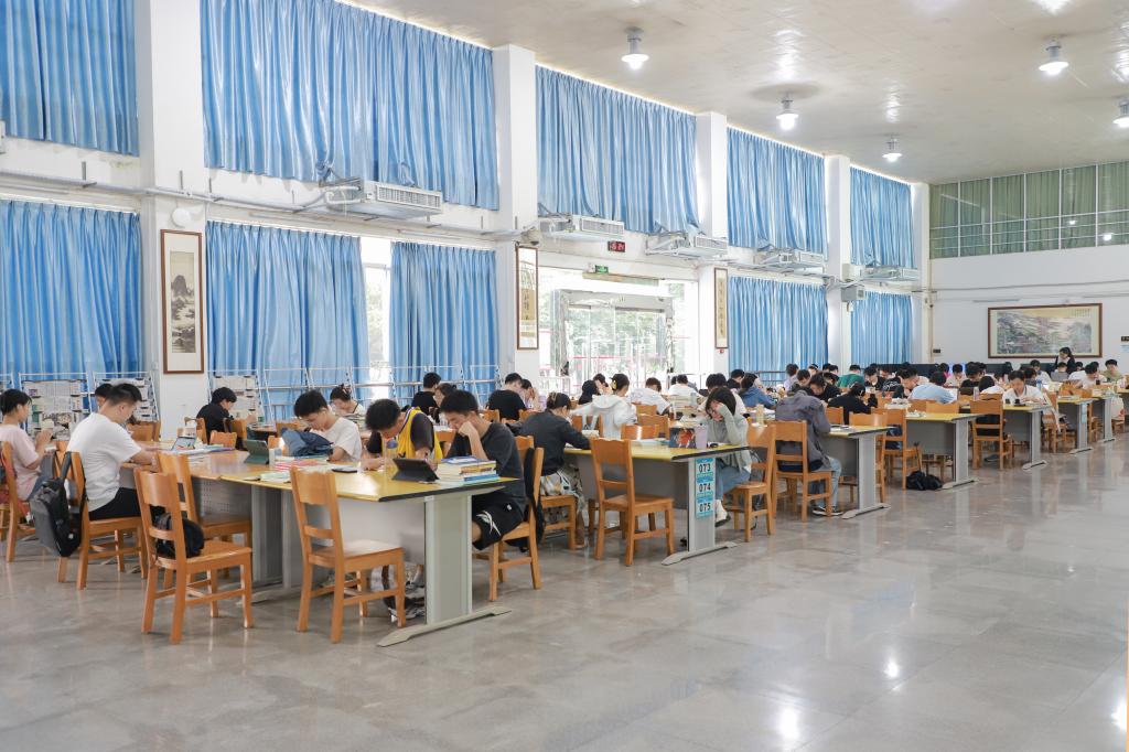 同学们在图书馆认真学习