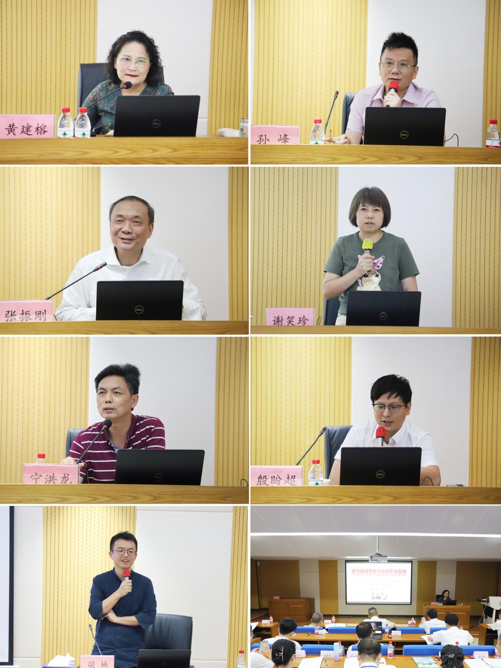 华南理工大学马克思主义学院黄建榕教授、人事处副处长孙峰、工商管理学院张振刚教授、高等教育研究所谢笑珍研究员、材料科学与工程学院宁洪龙研究员、前沿软物质学院殷盼超教授,土木与交通学院胡楠教授分别作专题报告