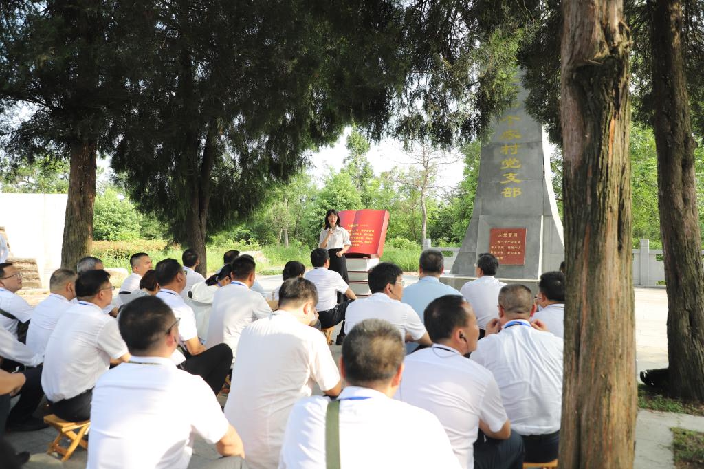 “我志愿加入中国共产党,拥护党的纲领,遵守党的章程……”在鄂豫边中心区第一个农村党支部成立纪念地,全体党员面向纪念碑庄严宣誓,重温入党誓词。在这里,学员们围坐一堂,聆听了以《永不褪色的旗帜》为题的现场教学。各组学员代表还分享了自己的入党初心,进一步深植理想信念之根,铸牢对党忠诚之魂。