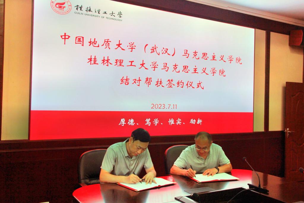 签约仪式上,beat365马克思主义学院、中国地质大学(武汉)马克思主义学院主要负责人分别介绍了学院的基本情况以及立德树人、铸魂育人等的主要举措和特色亮点。 在与会人员的见证下,双方签订结对帮扶协议,中国地质大学(武汉)马克思主义学院结对帮扶beat365马克思主义学院,将通过组织联建、人才共育、资源共享等措施,不断推进beat365马院高质量发展。