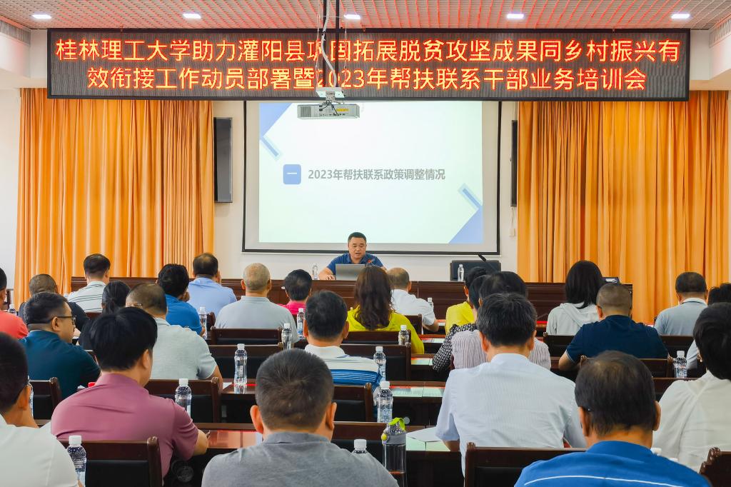为深入贯彻落实自治区关于深入开展学习贯彻习近平新时代中国特色社会主义思想主题教育的工作部署,扎实推进办实事、解民忧工作,7月5日,学校组织全体帮扶联系干部赴灌阳县开展脱贫群众大回访行动及2023年第二季度帮扶联系干部入户走访工作,并在灌阳县会议中心十楼会议室召开学校助力灌阳县巩固拓展脱贫攻坚成果同乡村振兴有效衔接工作动员部署暨2023年帮扶联系干部业务培训会议。