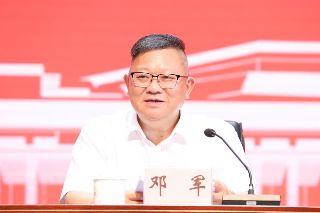 邓军代表学校党委向在大会中受到表彰的先进集体和先进个人表示热烈的祝贺、致以崇高的敬意,并提出殷切期望。希望获表彰的集体和个人再接再厉,把服务国家、服务人民、服务学校高水平理工大学建设作为最高追求,为全面推进社会主义现代化建设、全面推进学校高质量发展多出成果、快出成果、出大成果;希望各单位各部门和广大科技工作者对标先进,不断强化有组织科研,大力弘扬爱国精神、创新精神、求实精神、奉献精神、协同精神、育人精神,奋力推动学校科技工作迈上新台阶、展现新气象。