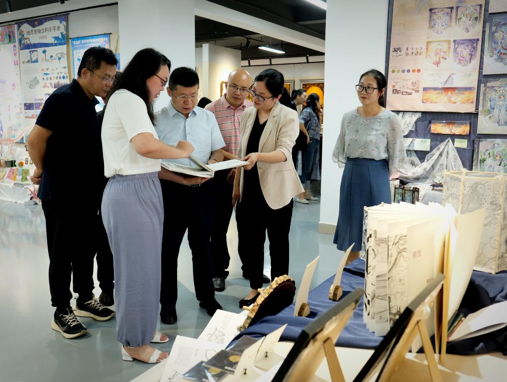 现场指导环节,艺术学院领导班子就2023届毕业生作品展的筹备、展出情况进行了介绍,围绕人才培养、环境育人以及设计学科服务地方经济发展等作了汇报。各专业教研室负责人在各自作品区域展示了优秀的毕业生设计作品。