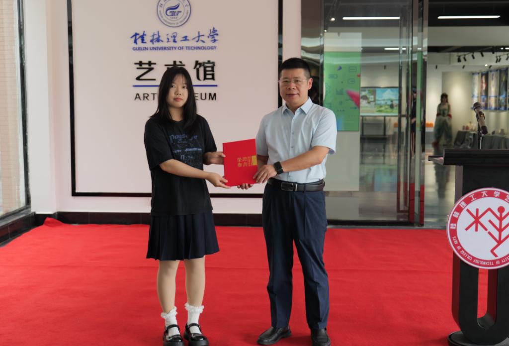 开幕式上,邓国彬代表学校致辞,对艺术学院毕业生作品展的顺利开幕表示祝贺,对艺术学院人才培养质量和学生学业水平给予充分认可,并祝愿毕业班每一位同学前程似锦、大展宏图、梦想成真,希望毕业生们常回家看看。随后,邓国彬为工艺美术专业2023届本科毕业生钟晓同学颁发了捐赠作品收藏证书,并宣布展览开幕。