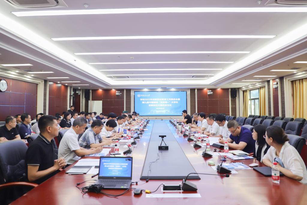 为深入学习贯彻习近平总书记关于创新创业教育的重要论述和党的二十大精神,进一步统一思想,凝心聚力,扎实推进学校创新创业教育工作和第九届中国国际“互联网+”大学生创新创业大赛组织工作,6月7日上午,学校在雁山校区15201综合会议室召开2023年创新创业教育工作推进会暨第九届中国国际“互联网+”大学生创新创业大赛启动仪式。学校党委副书记、校长王敦球出席会议并讲话。学校党委常委、副校长王玫主持会议。教务处、团委、研究生院等职能部门主要负责人,各二级学院院长、分管领导、团委书记,优秀指导教师代表参加会议。南宁分校分管领导、负责部门人员通过线上参会。