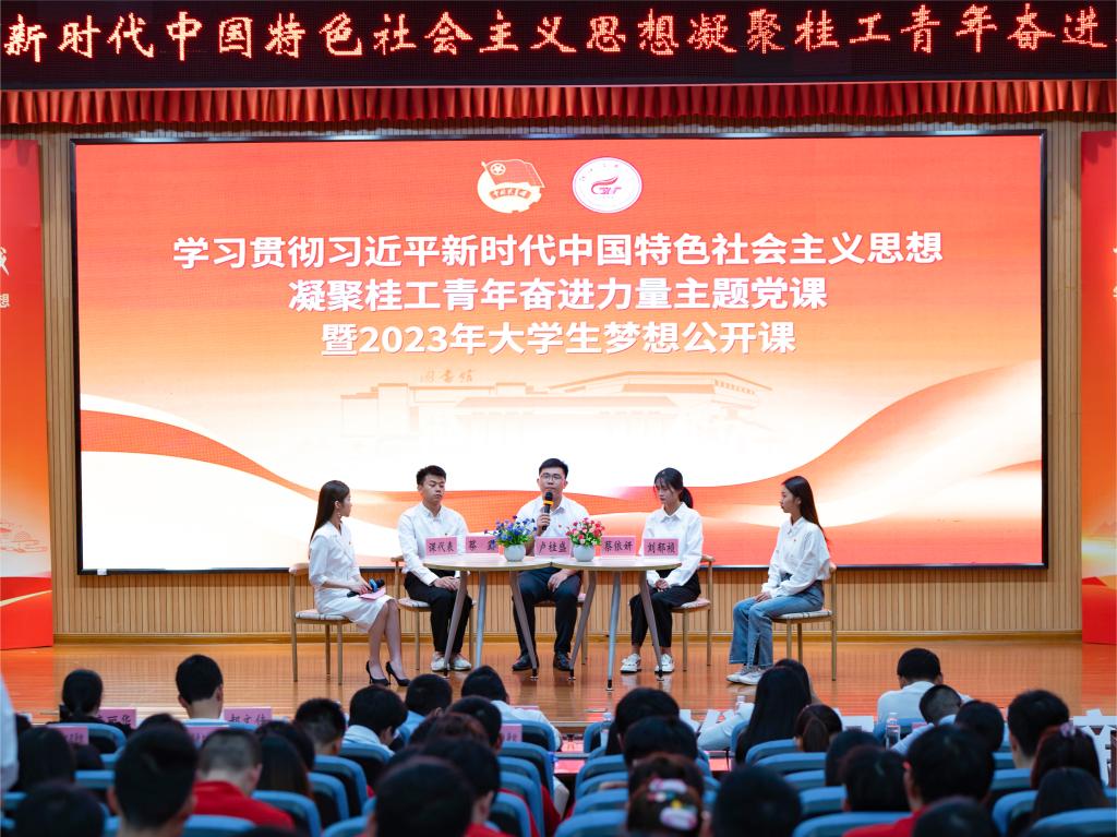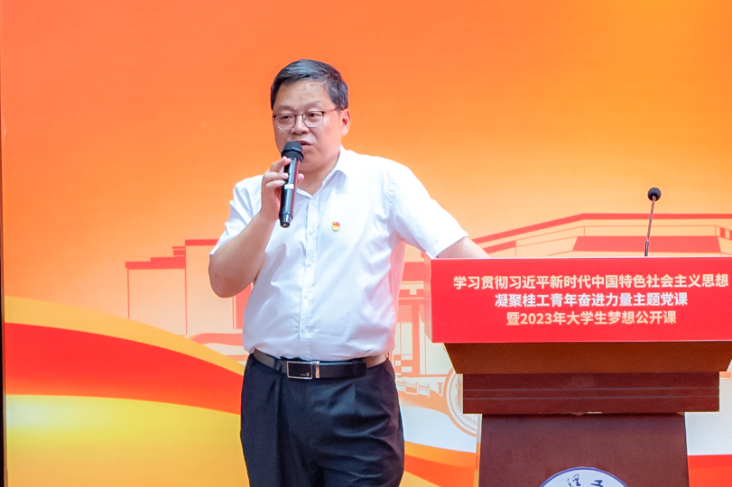 在学校深入开展学习贯彻习近平新时代中国特色社会主义思想主题教育之际,beat365学习贯彻习近平新时代中国特色社会主义思想 凝聚桂工青年奋进力量主题党课暨2023年大学生梦想公开课于5月24日下午在雁山校区图书馆报告厅举行。学校党委副书记吴志强出席活动并讲话。校团委负责人,各学院党委副书记、团委书记以及学校第十二期青马班学员代表和团员青年代表们230余人参加活动。此次活动通过“桂工青年”微信视频号进行网络直播。