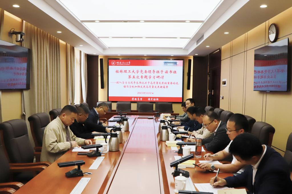 邓军在总结时指出,高质量发展是全面建设社会主义现代化国家的首要任务。邓军强调,要提高政治站位,进一步深化认识,深刻认识高质量发展对我国全面建设社会主义现代化国家的重大意义,真正把思想行动统一到推动高质量发展的轨道上来。要坚持带头系统学,深入思考持续学,牢牢把握“学思想、强党性、重实践、建新功”总要求,读原著、学原文、悟原理,把学习成效转化为坚定理想、锤炼党性和指导实践、推动工作的强大力量。要学以致用,学用结合,立足高等教育和学校发展实际,把握高等教育高质量发展要求,切实推动学校事业内涵式高质量发展,奋力开创高水平理工大学建设新局面,为建设教育强国、科技强国、人才强国和凝心聚力建设新时代壮美广西作出新的更大的贡献。