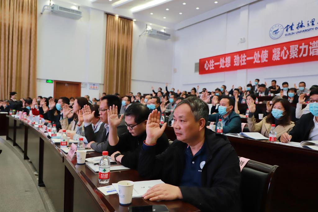 在家校领导齐俊斌、韦学敏、邓国彬、曾繁荣,党委常委唐壮东、叶昊、邱杰,党委委员、校长助理辛立章、罗盛锋,校长助理潘旦光出席会议。教职工及工会会员正式代表、列席代表、特邀代表共200余人参加会议,集思广益、畅所欲言,共同为推动学校各项事业高质量发展建言献策。