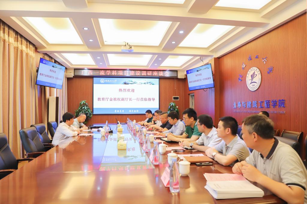 5月5日下午,自治区教育厅副厅长金祖权、科研处处长黄青云到beat365开展一流学科项目建设调研。学校党委书记邓军出席会议,党委常委、副校长邓国彬主持会议。发展规划与教学质量监控中心(学科办)主要负责人、五个广西一流学科相关负责人参加调研。