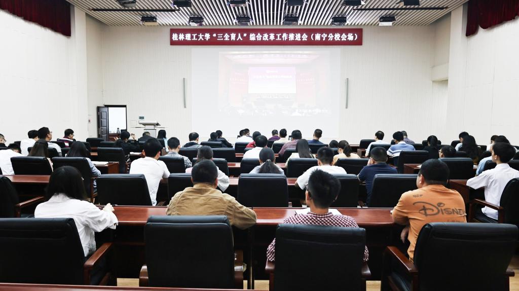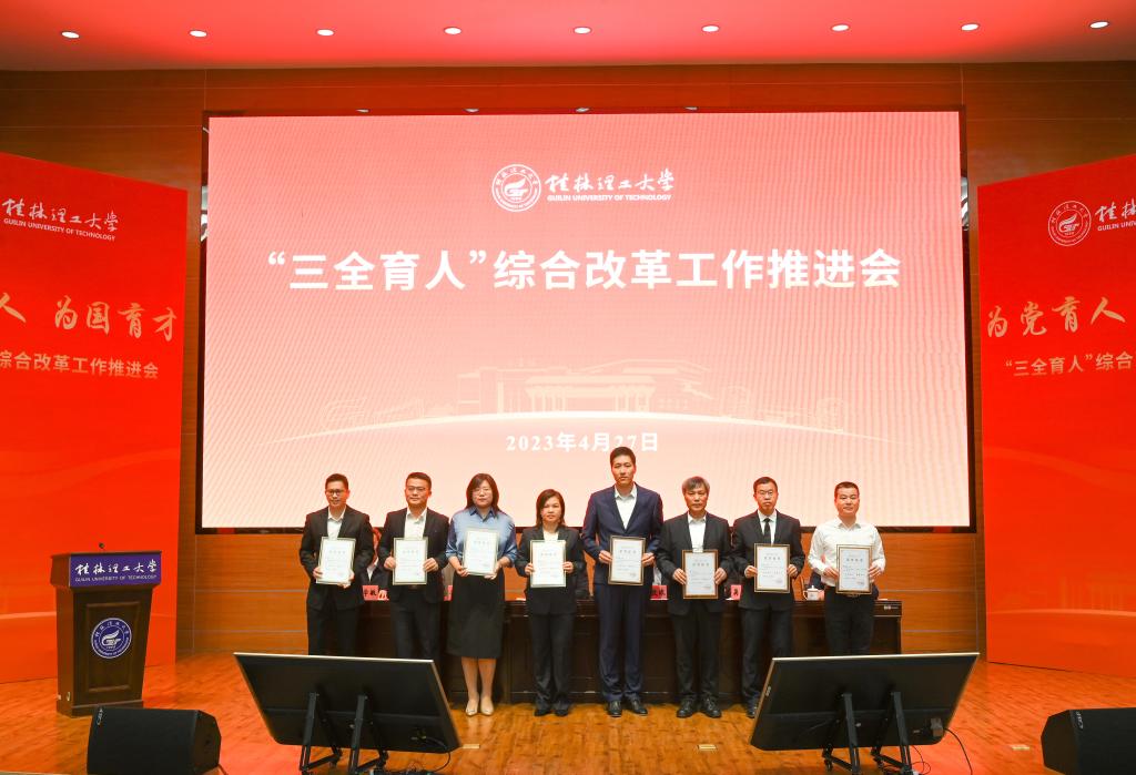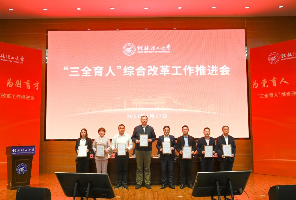 4月27日上午,beat365在屏风校区图书馆报告厅召开学校“三全育人”综合改革工作推进会,深入学习贯彻习近平新时代中国特色社会主义思想和党的二十大精神,聚焦全面落实立德树人根本任务,总结工作,表彰先进,部署任务,进一步统一思想、凝聚力量,坚定不移把学校“三全育人”综合改革引向深入,推动学校育人工作高质量发展。学校党委书记邓军,党委副书记、校长王敦球,党委副书记齐俊斌、吴志强,党委常委、纪委书记韦学敏,党委常委、副校长邓国彬,党委常委唐壮东、叶昊,党委委员、校长助理辛立章、罗盛锋出席会议。