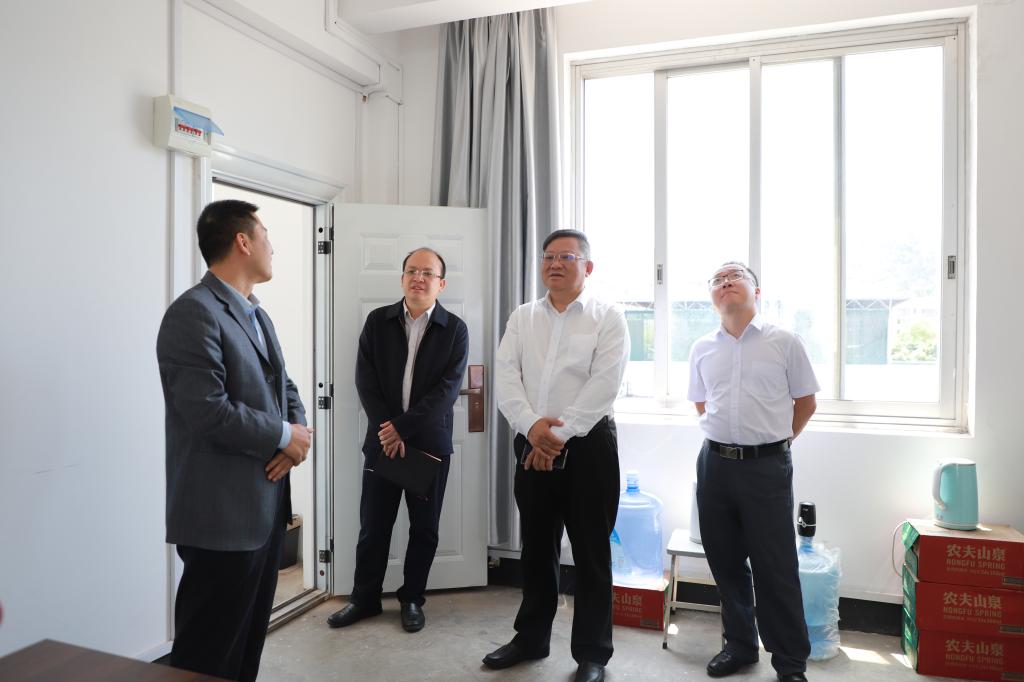 邓军书记(左二)到武装部保卫处办公场所实地调研