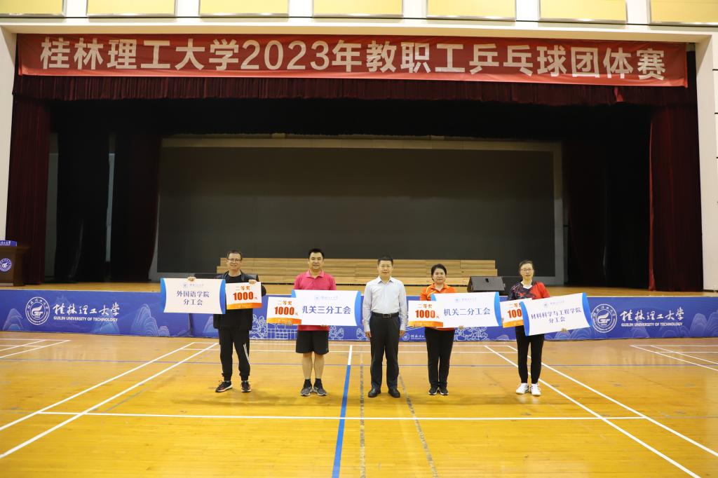 为深入贯彻落实党的二十大精神,丰富教职工的业余文化生活,增强教职工参加体育锻炼的意识,凝心聚力迎评促建,4月18日晚,由校工会、体育教学部共同主办的学校2023年教职工乒乓球团体赛在屏风校区体育馆三楼圆满落下帷幕。学校党委副书记、工会主席齐俊斌,校党委常委、副校长邓国彬出席闭幕式并为获奖队伍颁奖。