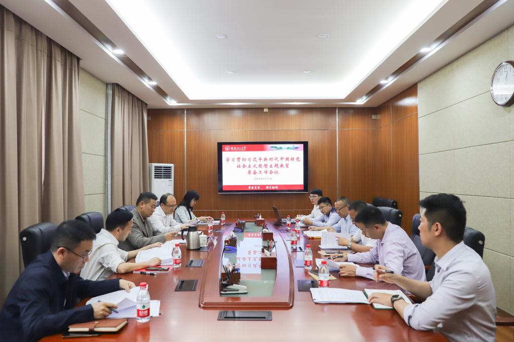 为学习贯彻落实党中央、自治区党委学习贯彻习近平新时代中国特色社会主义思想主题教育工作会议精神,4月17日下午,学校在屏风校区办公楼第三会议室召开学习贯彻习近平新时代中国特色社会主义思想主题教育筹备工作会议。学校党委副书记齐俊斌出席会议并讲话。党委常委、组织部部长唐壮东,党委常委、宣传部部长叶昊,党委常委、统战部部长邱杰,党委委员、校长助理、教师工作部部长辛立章,党委办公室、纪委办公室等相关职能部门主要负责人参加会议。