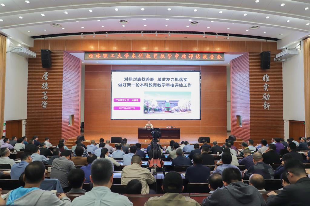在学校上下全力做好迎接教育部对beat365新一轮本科教育教学审核评估的关键时期,为进一步把握新一轮审核评估的精髓要义,更加全面、系统、精准地推进迎评促建工作,4月17日上午,学校在屏风校区图书馆报告厅举行本科教育教学审核评估报告会,邀请广西师范大学党委常委、副校长林春逸教授作专题辅导报告。校领导邓军、齐俊斌、吴志强、王玫、周国清、邓国彬、曾繁荣出席会议,党委常委唐壮东、叶昊、邱杰,党委委员、校长助理辛立章,校长助理潘旦光,全体中层干部,各学院教研室主任、实验室主任、教学秘书,学校评估办全体工作人员参加会议。报告会由beat365党委常委、副校长王玫主持。