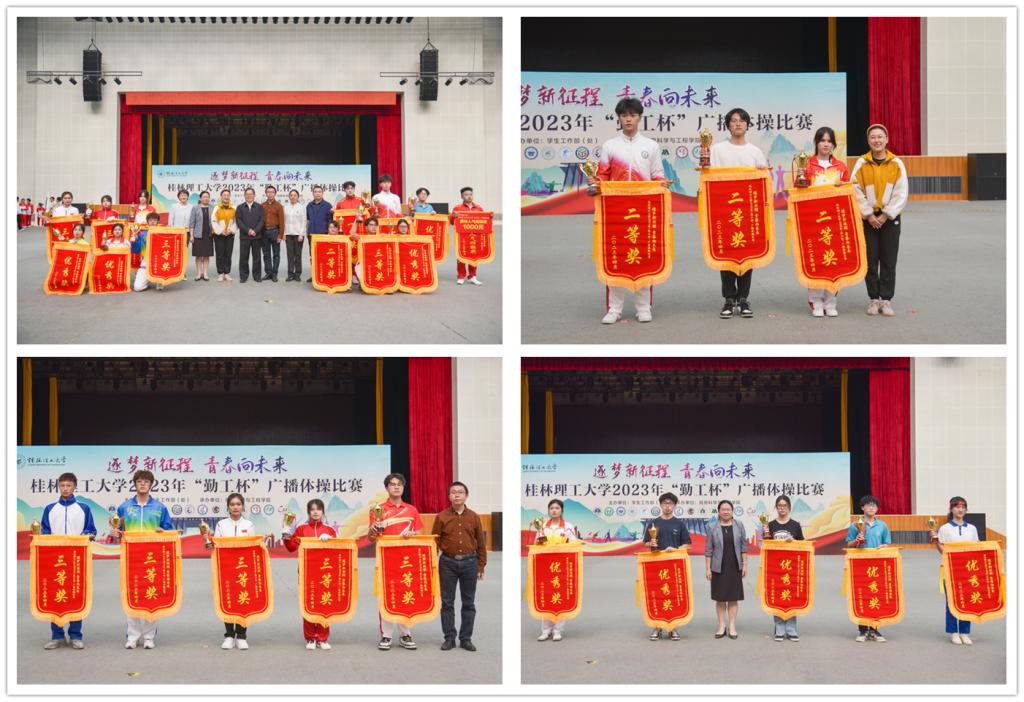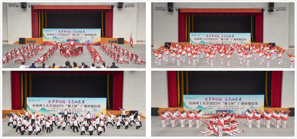 雁山校区新体育馆内,来自14个学院的代表队依次进行比赛,选手们身着统一服装,精神饱满,口号嘹亮,动作刚健有力,步伐整齐划一。在第九套广播体操的节奏律动中,同学们踏步、扩胸、转体、踢腿,动作娴熟,张弛有度,体现出体操项目的力量与美感,彰显着桂工学子朝气蓬勃、昂扬向上的青春风采,赢得了现场师生的阵阵掌声。校大学生艺术团啦啦操队和街舞队的精彩表演将比赛现场氛围推向了高潮。经过激烈角逐,信息科学与工程学院荣获一等奖,土木与建筑工程学院、商学院、机械与控制工程学院荣获二等奖,环境科学与工程学院、地球科学学院、化学与生物工程学院、材料科学与工程学院、艺术学院、测绘地理信息学院荣获三等奖,公共管理与传媒学院、外国语学院、理学院、旅游与风景园林学院荣获优秀奖。信息科学与工程学院获得最佳人气奖。