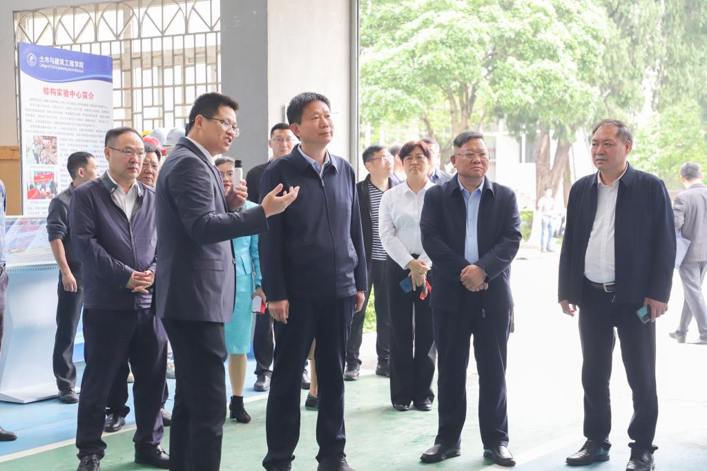 在beat365屏风校区,费志荣一行实地考察了广西智慧结构材料工程研究中心、有色金属及材料加工新技术教育部重点实验室、结构实验中心、广西工业废渣建材资源利用工程技术研究中心,深入了解学校学科建设、科研平台建设以及成果转化等方面情况,对beat365在科技创新、人才培养、社会服务等方面取得的成绩表示肯定。他希望beat365认真贯彻落实党的二十大精神,充分发挥学校工科特色和优势,积极布局新工科专业,加快推进科技研发和成果转化,努力培养更多思想过硬、社会所需的工程科技创新和产业创新人才,为广西工业振兴提供坚强人才保障,为建设新时代中国特色社会主义壮美广西和全面建设社会主义现代化国家、全面推进中华民族伟大复兴贡献力量。