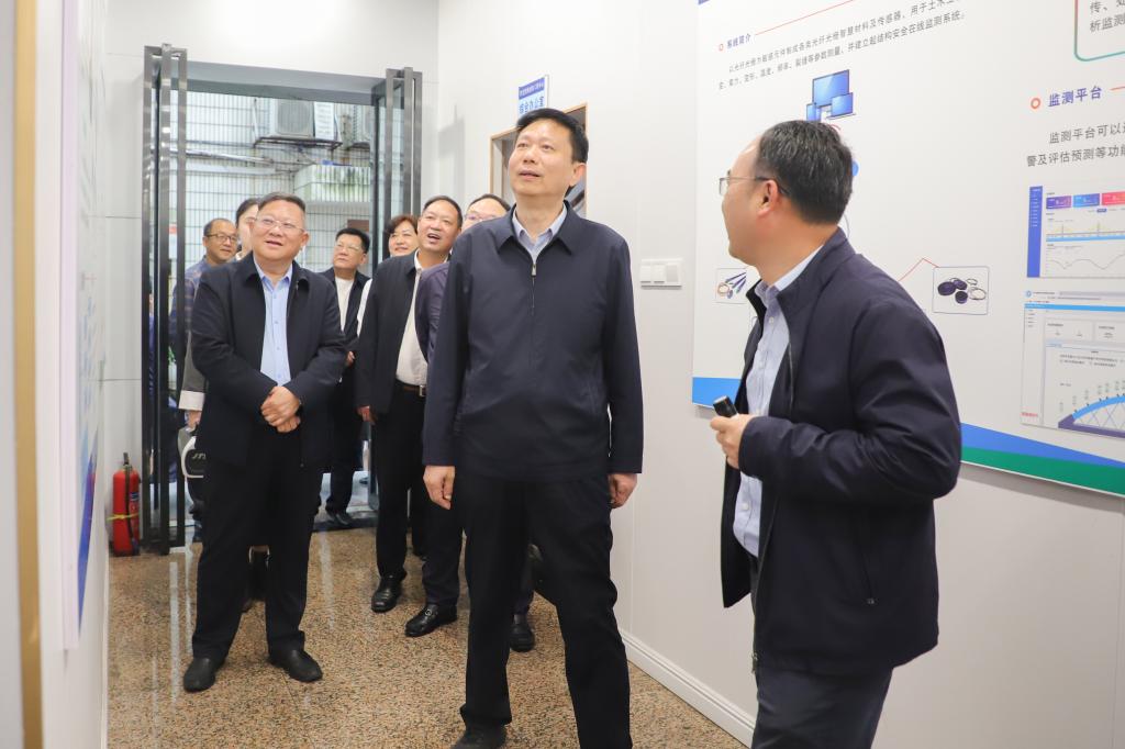 自治区政协费志荣副主席(中)一行在广西智慧结构材料工程研究中心实地考察