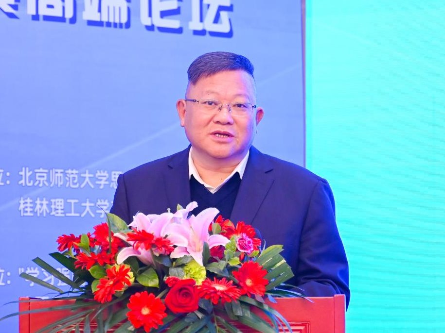 冯刚首先对“新时代高校思想政治教育与新文科创新发展高端论坛”的举办表示祝贺,对广西壮族自治区党委教育工委、教育厅的支持表示感谢。随后,冯刚作题为“深刻把握思想政治教育学科发展的时代蕴含”主题报告。他从新时代高校思想政治教育的理论遵循、实践基础、时代构建三方面提出要加快推进思想政治教育学科建设,推动文科之间、文科与理工农医学科交叉融合,发挥思想政治工作生命线的优良传统,把党的十八大以来习近平总书记系列重要论述中蕴含的新理论新思想新观点内化到思想政治教育原理之中,把外部支持和中央文件精神转化为高校思想政治教育发展的内在动力,实现从外部支撑下的扩展向依靠学科自身力量基础上的内涵式发展转化。