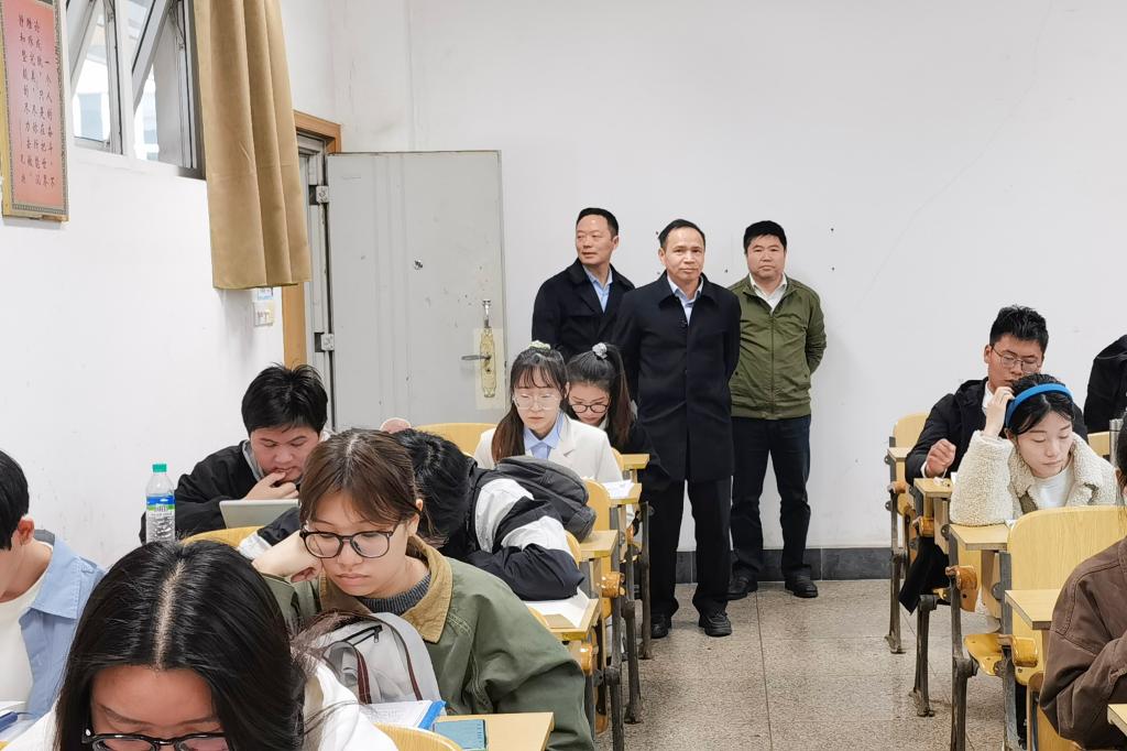 周国清副校长(右一)一行在beat365研究生考试面试现场督查指导
