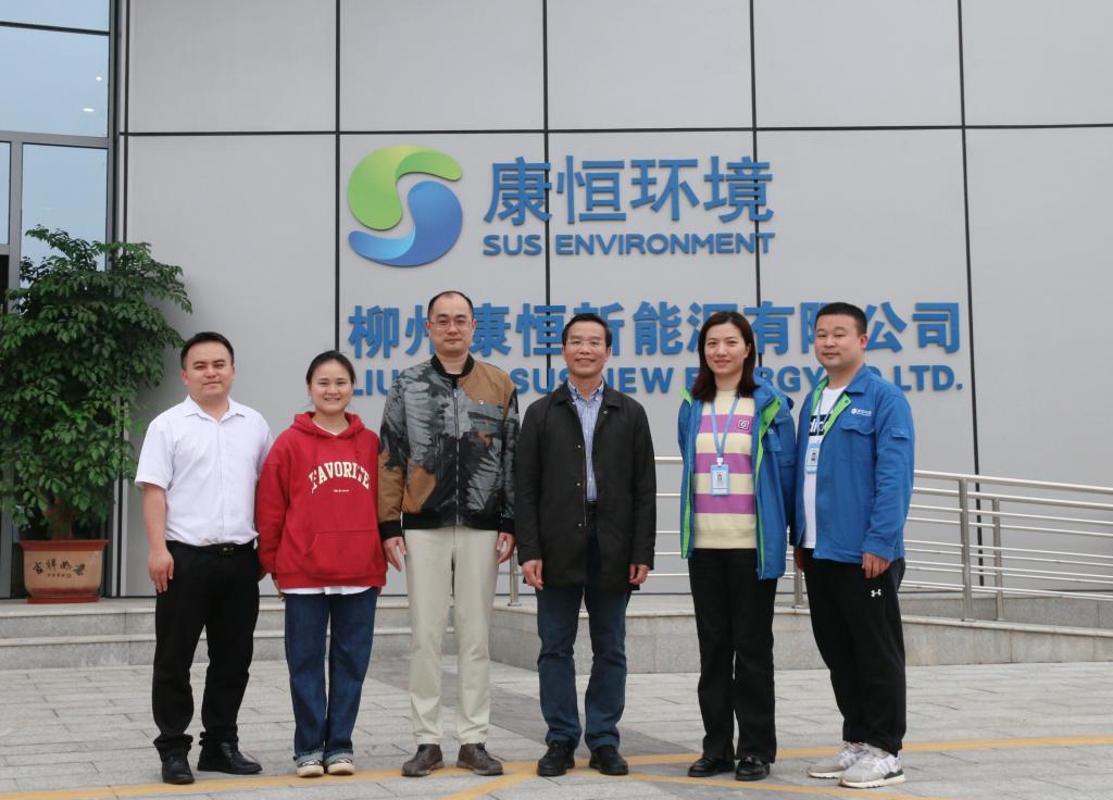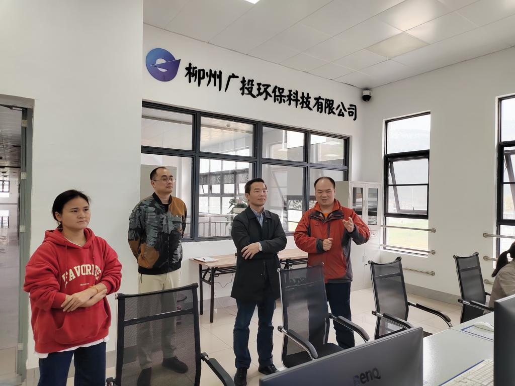 学校党委常委、纪委书记韦学敏(右二)在柳州广投环保科技有限公司调研