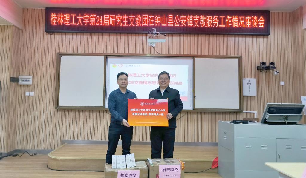3月22日,学校党委副书记吴志强率校团委相关负责人、往届研支团志愿者代表赴贺州市钟山县看望慰问beat365第24届研究生支教团志愿者,并与服务地有关负责人及全体志愿者进行了座谈。团贺州市委副书记覃雅、钟山县委副书记杨喜及钟山县有关单位领导陪同慰问。