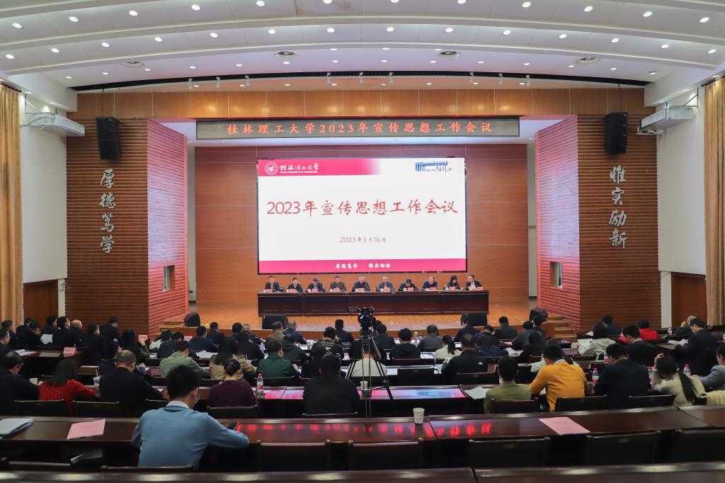 齐俊斌明确了2023年学校宣传思想工作总体要求,并从五个方面就做好今年学校宣传思想工作进行部署:要进一步推动党的创新理论入脑入心,持续深入用习近平新时代中国特色社会主义思想铸魂育人;要进一步压实意识形态工作责任,牢牢掌握意识形态工作领导权、管理权、话语权;要进一步创新宣传方式方法,巩固壮大奋进新征程的主流思想舆论;要进一步彰显校园文化特色,坚持以文化人、以文育人,着力推进校园文化建设;要进一步构建完善“大宣传”格局,形成各方支持参与、协同推进宣传思想工作的良好局面。他强调,全校上下要深入学习贯彻习近平总书记关于宣传思想工作的重要思想,紧扣深入贯彻落实党的二十大精神这条主线,按照全国、全区宣传部长会议部署要求,坚定不移举旗帜、聚民心、育新人、兴文化、展形象,旗帜鲜明讲政治、苦练内功强本领、求真务实转作风、敢于斗争求胜利,统筹做好学校党委三届五次会议、开学工作布置会议等部署安排的各项重点工作,奋力推动全校宣传思想工作开创新局面,为建设中国式现代化广西篇章贡献“桂工力量”。