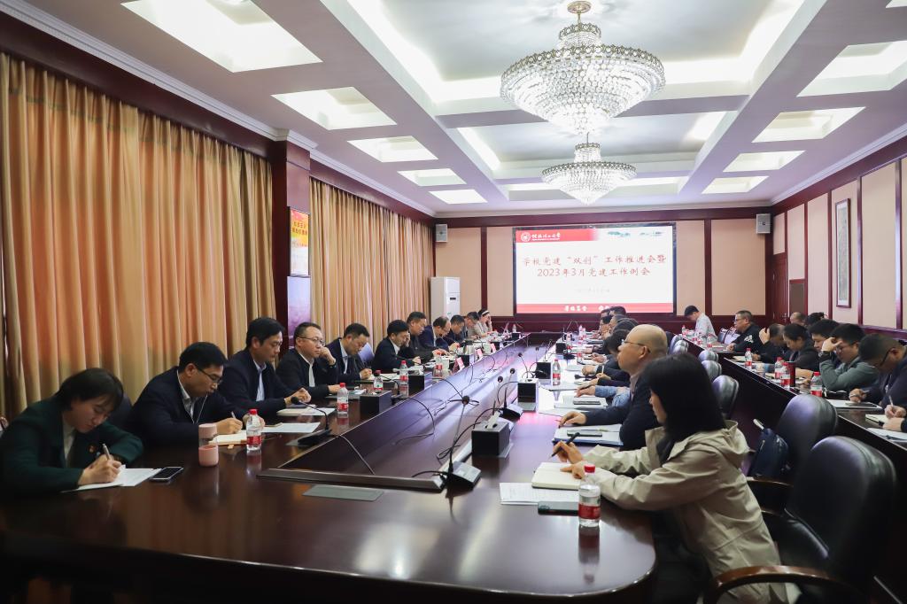 3月15日下午,学校在屏风校区教八楼三楼会议室召开党建“双创”工作推进会暨3月党建工作例会。学校党委副书记齐俊斌,党委常委、组织部部长唐壮东,党委常委、宣传部部长叶昊,党委委员、校长助理、教师工作部部长辛立章出席会议。党委职能部门主要负责人,各二级党委书记,全国、全区党建工作样板支部、“双带头人”教师党支部工作室负责人参加会议。