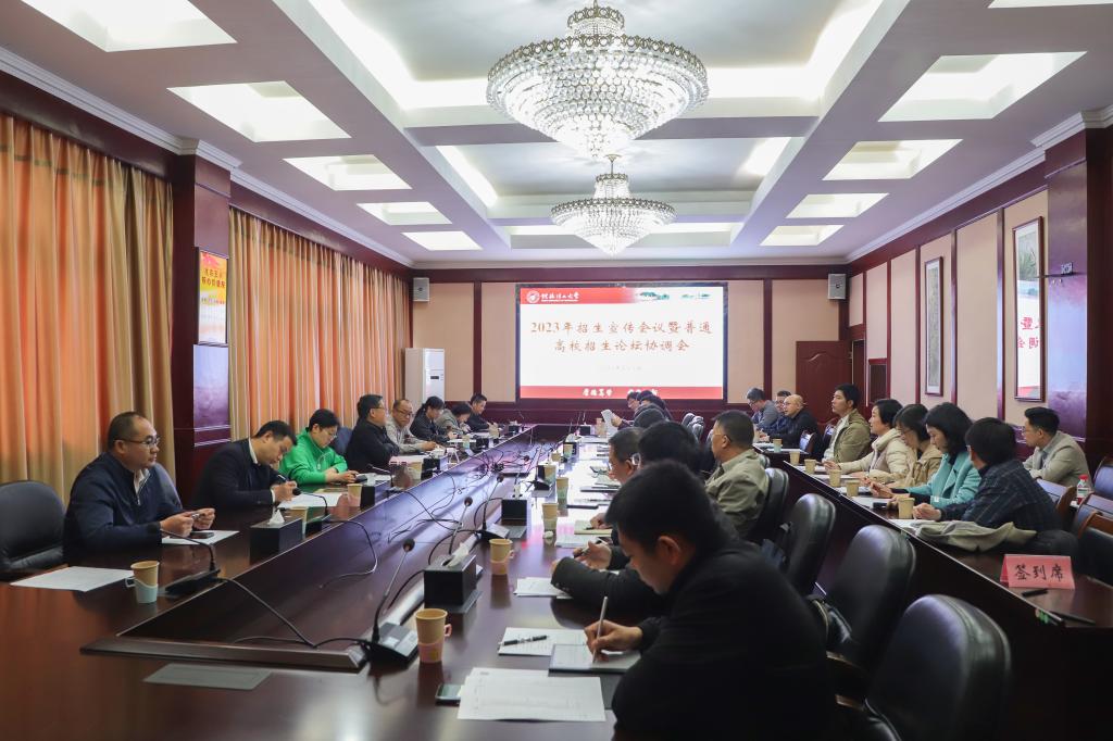 3月9日上午,学校在屏风校区教八楼三楼会议室召开2023年招生宣传会议暨普通高校招生论坛协调会。学校党委副书记吴志强出席会议并讲话。党办校办、宣传部、学工部(处)、团委、保卫处、后勤集团、财务处、资产处、网络与信息中心、校医院等部门相关负责人,各学院主要负责人,招就处全体工作人员参加会议。南宁分校设直播分会场。