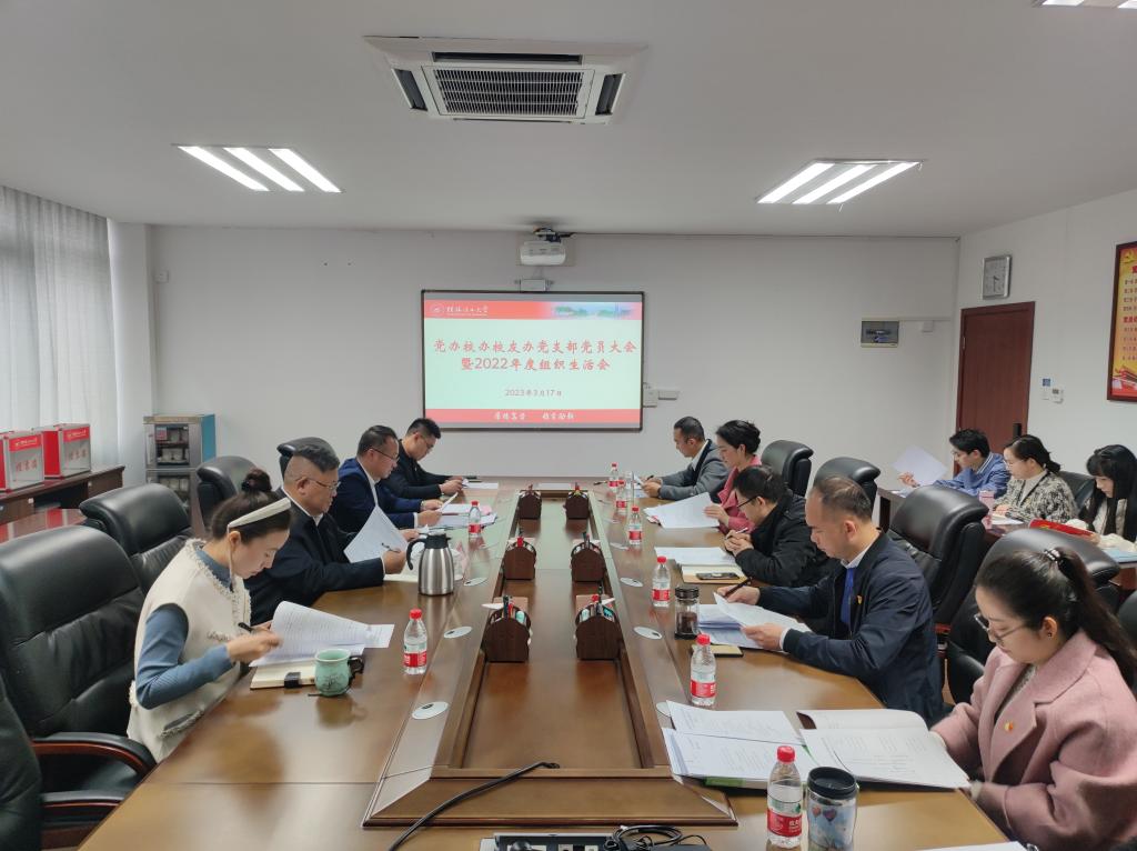 3月17日下午,党办校办校友办党支部召开党员大会暨2022年度组织生活会。学校党委书记邓军同志以普通党员身份参加会议。党办校办校友办党支部全体党员参加会议,党支部书记、党办校办主任张成龙同志主持会议。